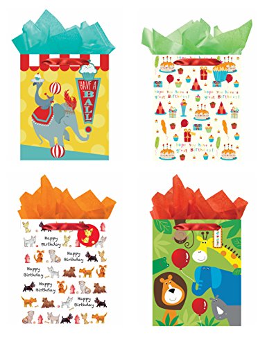 Set of 4 Large Birthday Gift Bags w/ Tissue Paper
