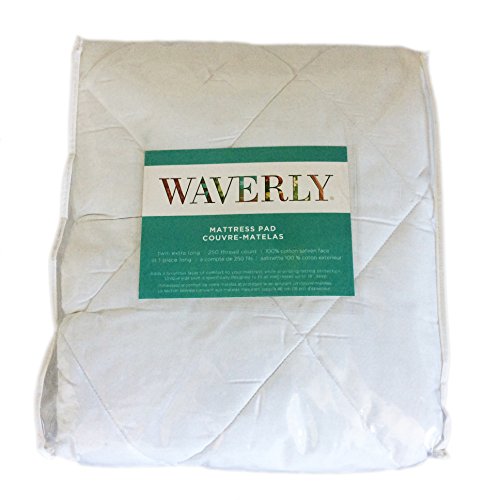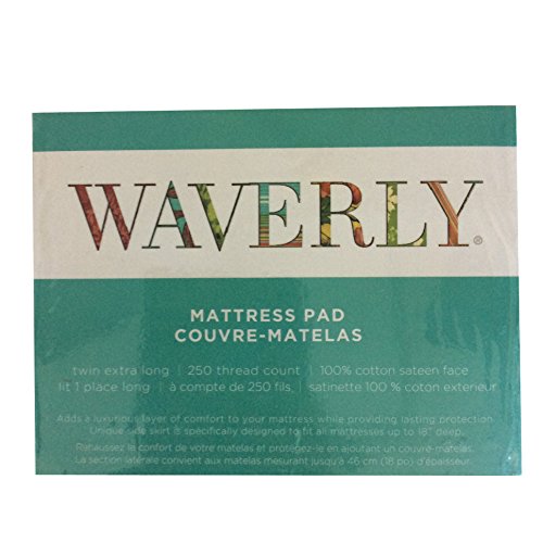 -. Brand : Waverly -. Color : White -. EAN : 0811644026017 -. Feature : This mattress pad by Waverly features a solid build construction that keeps it durable after years of use. Perfect for a twin XL bed in your bedroom or dorm room! / Material - 100% Cotton Sateen Face / Size - Twin XL ("39x81") / 30 Day Sleep Better Guarantee -. PackageQuantity : 1 -. ProductGroup : Home -. ProductTypeName : HOME_BED_AND_BATH -. Size : Twin XL (39"x81") -. Title : Waverly Twin XL Mattress Pad -. UPC : 811644026017