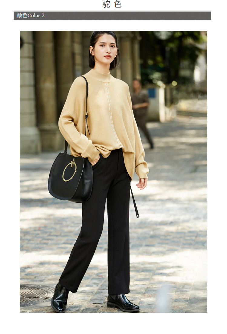 | 面料成分: | 黑色:26.9%羊毛、57.7%腈纶、15.4%锦纶 驼色:19.7%羊毛、53.1%腈纶、27.2%锦纶 |