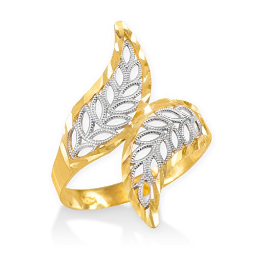 -. Binding : Jewelry -. Brand : Modern Contemporary Rings -. Department : womens -. Feature : elegant handmade statement jewelry band for women with marquise pattern leaves and open design motif / intricately handcrafted with 10 karat 2-tone white and yellow gold in fine polished finish / comes with free special gift packaging / made in the USA yet offered at factory direct jewelry P.R.Ice / ships from the manufacturer directly to the customers -. Label : Claddagh Gold -. Manufacturer : Claddagh Gold -. Model : R52 -. MPN : R52 -. PartNumber : R52 -. ProductGroup : Jewelry -. ProductTypeName : FASHIONRING -. Publisher : Claddagh Gold -. Studio : Claddagh Gold -. Title : High Polish 10k Two-Tone Gold Double Leaf Filigree Cocktail Ring