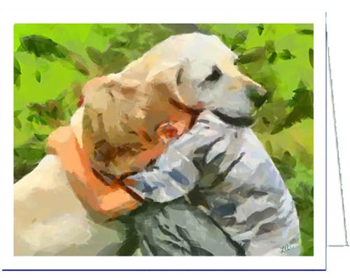 -. Title : Yellow Labrador Retriever with Child Blank Note Cards - Set of 6 with Envelopes by DoggyLips