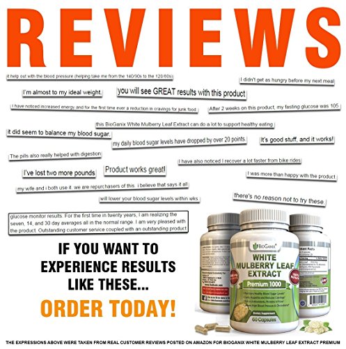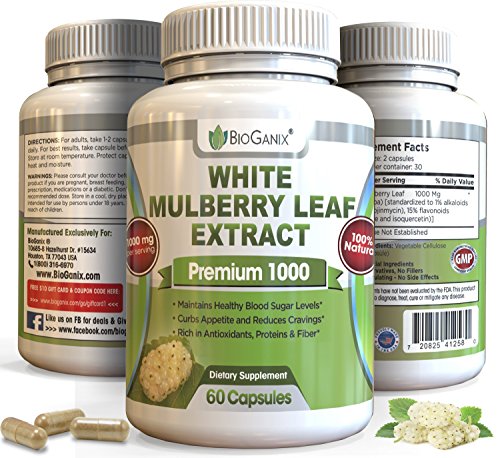 ★ BEST 100% NATURAL WHITE MULBERRY EXTRACT SUPPLEMENT - BioGanix White Mulberry Leaf Extract Premium 1000mg! [500mg per pill, 1-2 Veggie Capsules per serving - Take with 8 Oz glass of water as Dr recommends]