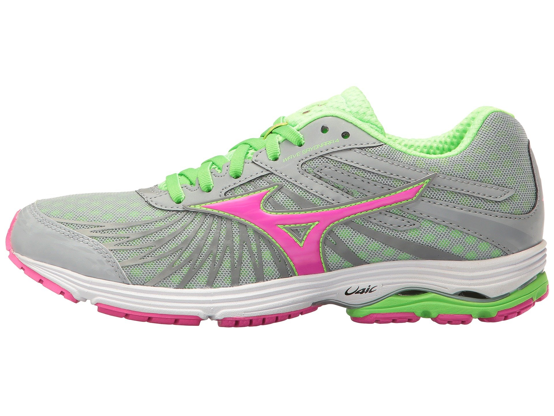 | Product Information SKU: #8992914Peace out and put the miles behind you when you hit the pavement in the Mizuno? Wave Sayonara 4 running shoe!Predecessor: Wave Sayonara 3. Support Type: Neutral to underpronation (supination).Cushioning: Lightweight, flexible response. Surface: Road.Differential: 10 mm. Breathable mesh and synthetic upper materials. Printed forefoot overlays promote a performance fit and feel. Lace-up closure.Padded tongue and collar.Breathable fabric lining. Removable foam insole.Soft, responsive U4ic midsole.Parallel Wave? in the heel provides just the right amount of cushioning and stability.Soft blown rubber at the forefoot for durability, pressure distribution, and underfoot cushioning. X10™ carbon rubber through the heel and toe for supreme traction and maximum durability.Asymmetrical forefoot flex grooves allow the foot to move more naturally.Imported. Product measurements were taken using size 7.5, width B - Medium. Please note that measurements may vary by size.Weight of footwear is based on a single item, not a pair.Measurements: Weight: 7 oz |