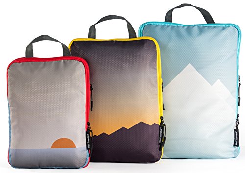 Product Description Well Traveled is a brand for travelers and explorers. Durable, lightweight, and water-resistant, these packing cubes are designed to handle any type of adventure. The artwork is inspired by real imagery from our own travels, including snow covered mountains, dusk in the desert, and sunrises over calm seas. We're not just another imported product line on Amazon, but rather a small team of international explorers, outdoor enthusiasts, artists, and dreamers. Headquartered in Colorado, we are passionate about making travel gear that is both highly functional and highly noticeable. Stand out from the crowd with our limited edition Compression Packing Cubes Set. Well Traveled - Go Somewhere New. 0