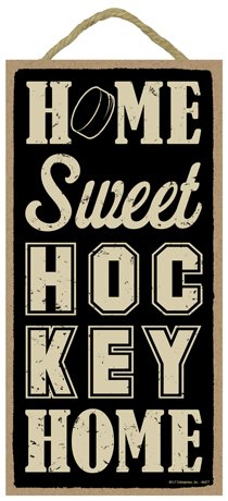 (SJT94477) Home sweet (hockey) home 5" x 10" primitive wood plaque, sign