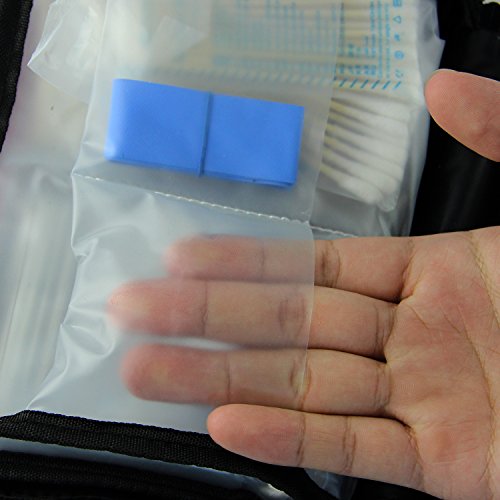 INCLUDES (123 Piece): different adhensive bandages, cleansing wipe, CPR Kit, high qulity scissors and tweezers, and refill essentials! Fits perfectly in handbag, pocket or backpack.