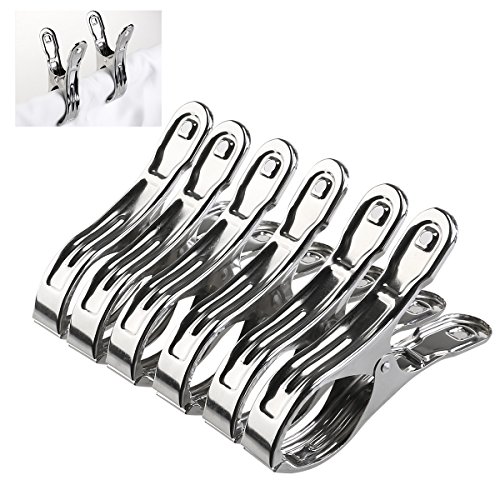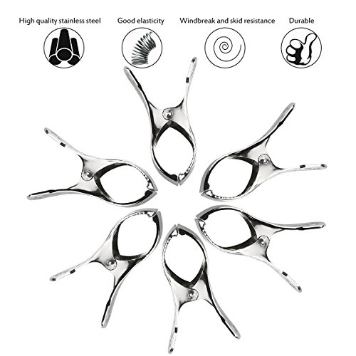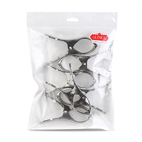 ULTNICE 6 Pack Stainless Steel Large Beach Bath Towel Clips, Heavy Duty Clothes Hanger Clamp- Keep Your Towels From Blowing Away