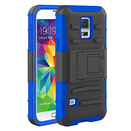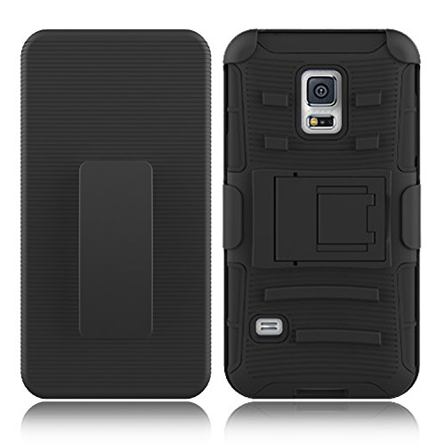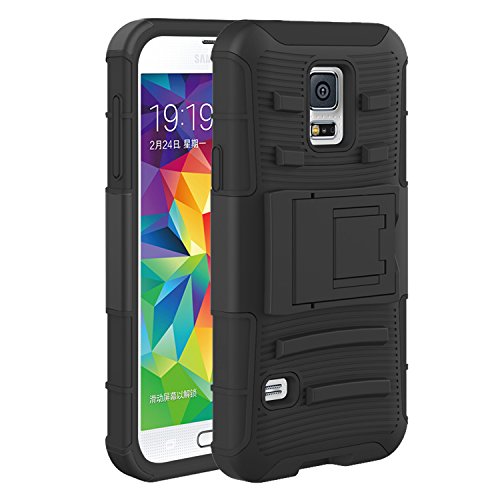 -. Feature : Compatible: Specifically designed for Samsung Galaxy S5 only (2014) and it will NOT fit the Samsung Galaxy S5 Active, S5 Mini and S5 Sport / Material: Soft shock absorption silicone inner sleeve & Impact-resistant hard skid plastic shell back cover with fordable kickstand Belt Swivel / Unique Design: 180 degree rotating belt clip swivel allowing for multiple positions of carriage, foldable kickstand for hands free watching movies, video, pictures / Reliable: High quality manufacturing guarantees precision cut openings for access to all buttons and ports / Package: All our products are packed with retail package which can be protected the case well
