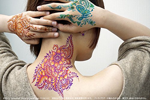 -. Feature : 描きやすい日本製の筆ペンタイプ。ペン先は、筆にこしがあり、絵柄はもちろん、細い線、曲線、塗りつぶしまで、とても描き易く作られています。タトゥー風メイクやボディーアート、ヘナタトゥー風メイクもオススメ。 / 水や汗で落ちにくく、お肌に優しい化粧品用色素を使用した、フェイス&ボディペイント専用ペン。イベント、パーティー、ライブなどももちろんハロウインにもオススメ。お肌に優しいペンはお子様のパーティーも安心。 / 擦らなければ3〜4日持ちますが、フェイスペイントなど後で簡単に落としたい場合、乳液やスキンケアクリーム(メークをお湯で落とせる化粧下地がオススメ)を肌に先に塗ってから描くと、ペイントを楽に落とせます。 / 落とし方:除菌シートなどアルコールが含まれるウエットティッシュで色を落とし、肌に残った色はボディソープ、洗顔料でこすり洗いしてください。また、セロハンテープで毛玉取りの要領で色を剥がすこともできます。 / 注意:衣類にインクが付くと落ちません。完全に乾くまで衣類等に付かないようご注意ください。ペンはキャップをしてください乾燥するとインクが出なくなります。また、キャップを忘れると衣類を汚す原因になります。