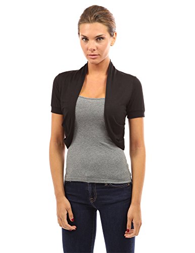 Short Sleeve Pleated Sides Crop Bolero Shrug Cardigan Top. Model in pictures is 5 feet 8 inches (173cm) tall wearing size S.