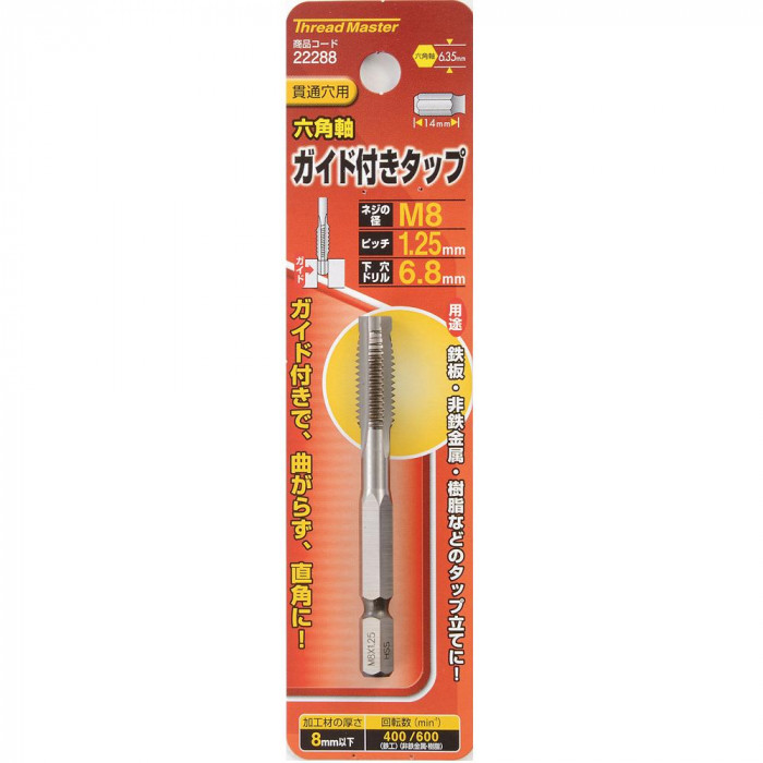 サイズ下穴ドリル径:6.8mm、加工材の厚さ:8mm以下