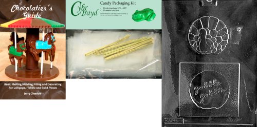 Cybrtrayd Gobble Turkey Thanksgiving Chocolate Mold with Chocolatier's Bundle, Includes 25 Cello Bags, 25 Gold Twist Ties and Chocolatier's Guide
