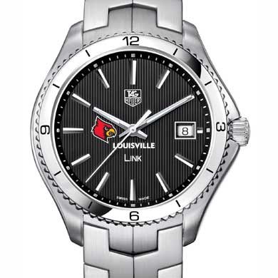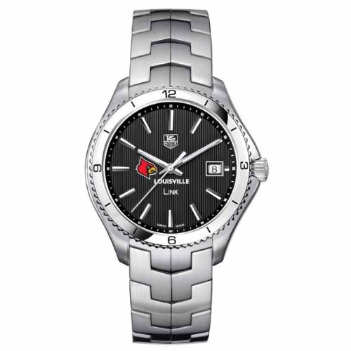 -. Binding : Misc. -. Brand : TAG Heuer -. Color : Black -. Department : mens -. EAN : 0615789196709 -. Feature : Officially licensed by Louisville / Brushed steel bracelet with deployment clasp; Solid Steel case (40mm diameter) / Luminescent hands and indexes for optimum readability / Screw-in crown and caseback for water resistance to 100 meters Swiss made Quartz movement Scratch-resistant sapphire crystal Unique TAG Heuer presentation box TAG Heuer international two-year warranty -. Label : TAG Heuer -. Manufacturer : TAG Heuer -. MPN : 19670 -. PackageQuantity : 1 -. PartNumber : 19670 -. ProductGroup : Sports -. ProductTypeName : SPORTING_GOODS -. Publisher : TAG Heuer -. Studio : TAG Heuer -. Title : Louisville TAG Heuer Men's Link Watch with Black Dial -. UPC : 615789196709