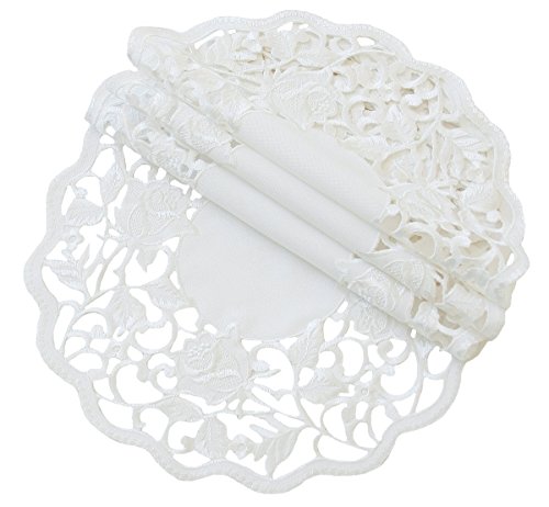 - Hand rendered cutwork with intricate floral embroidery