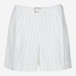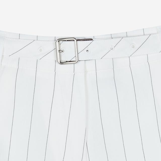 스트라이프 패턴의 린넨 혼방 소재를 사용하여 시즌 분위기를 살린 반바지입니다.