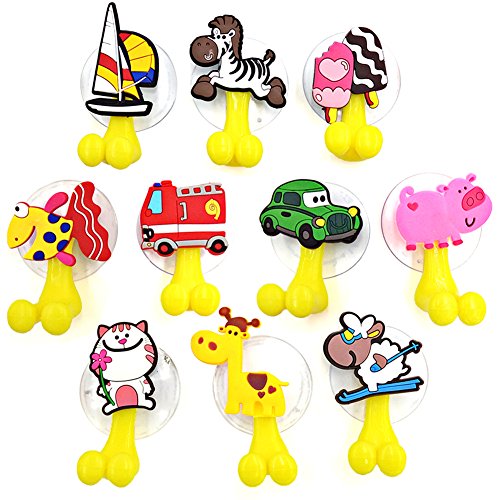 10pcs Antibacterial Toothbrush Holder with Suction Cup Hook for Mirror/Shower Cute kids Animals Emoji Decorative Bathroom Toiletries Accessories Popular Office Cable Wall Mounted Best Gift