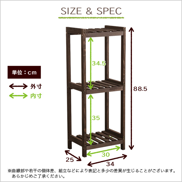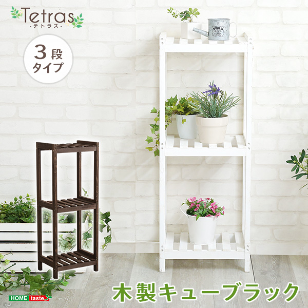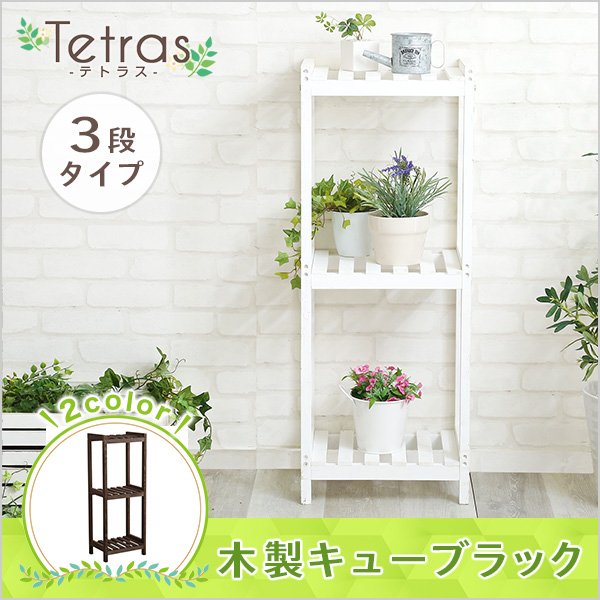 ●お花や小物をオシャレにディスプレイできる木製キューブラック3段タイプ