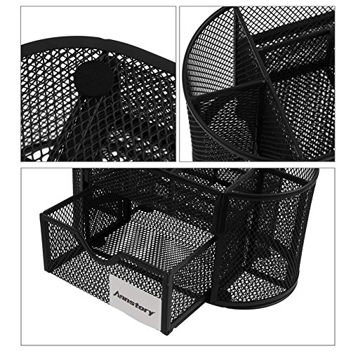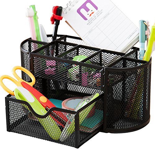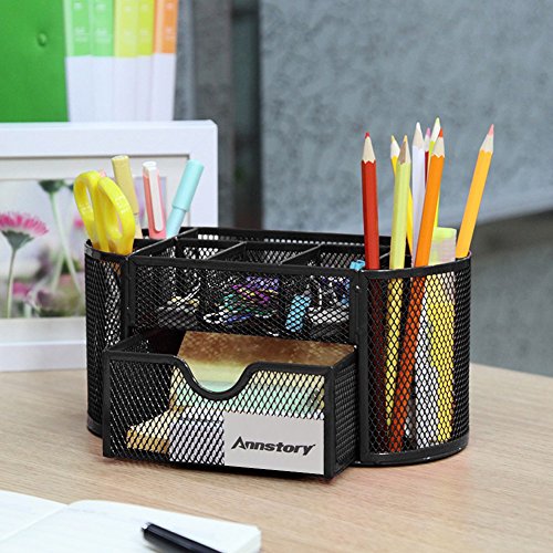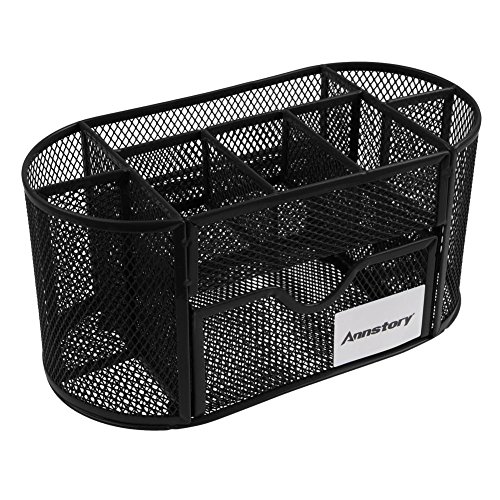 Annstory, Home Office Mesh 1- Drawer Tray Desktop Organizer with 9 Compartments, Black