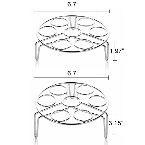 AMAZING USE: 1.Great for making hard boiled eggs, they stay put and don't roll around,conveniently cooks 1 to 7 eggs in a few minutes;2.Convenient to use to steam the food with a plate, such as Fish, Tamale, Crab, Veggies, or Anything You Wish To Steam ; 3. Using as instant pot steam rack, egg steam rack, cooling rack, pot stand rack and so on.