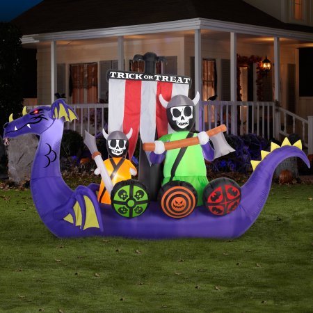 -. Title : Gemmy Airblown Inflatable 7.5' X 12' Giant Animated Viking Ship Halloween Decoration