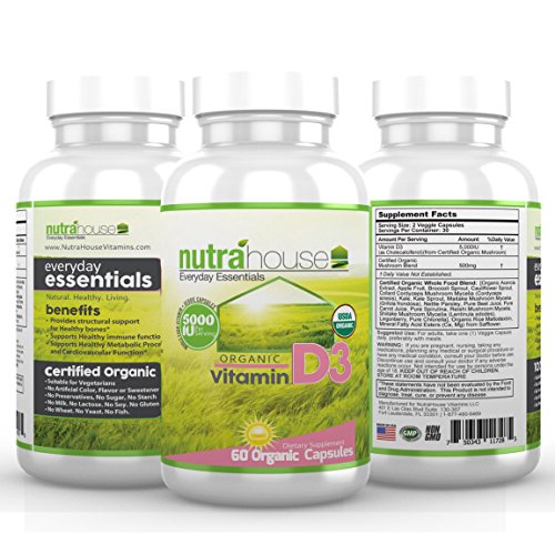 -. Title : Certified USDA Organic Vitamin D3 5,000 IU made from Organic Whole Foods. 60 Capsules. Enhances Calcium Absorption for Building & Supporting Healthy Bones. Vitamin D3 from Certified Organic Mushroom