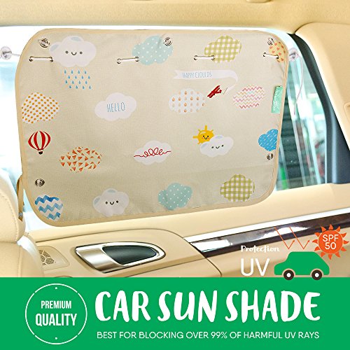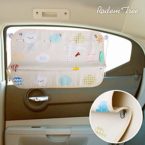 *High Quality - Our Car Sun Shade has a Double layer design. (Cute Design layer+solar shade second layer) Blocking over 99% of Harmful UV Rays. Keep your child cool and shield them from UV rays and sun glare with Rodem Tree Car Sun Shade. The unique design with Adjustable and suction cups for easily installation.