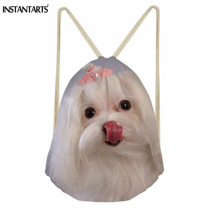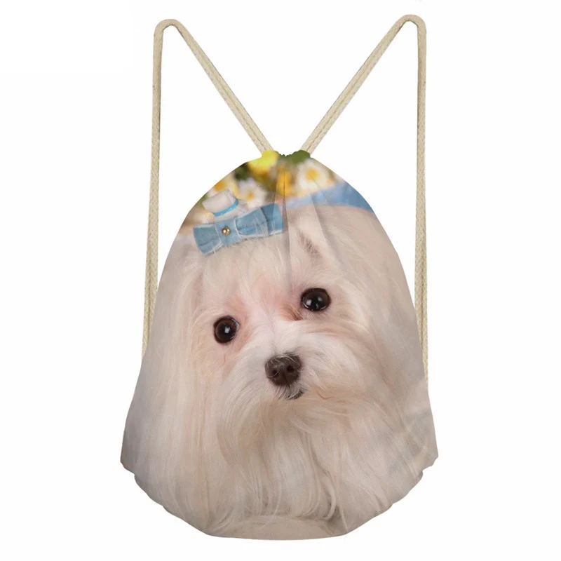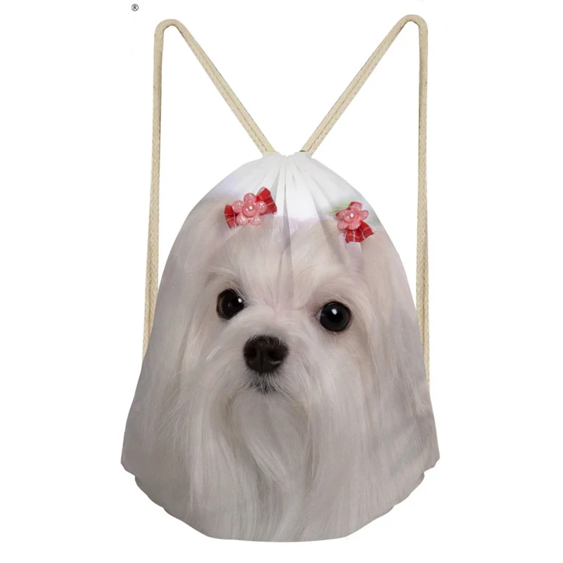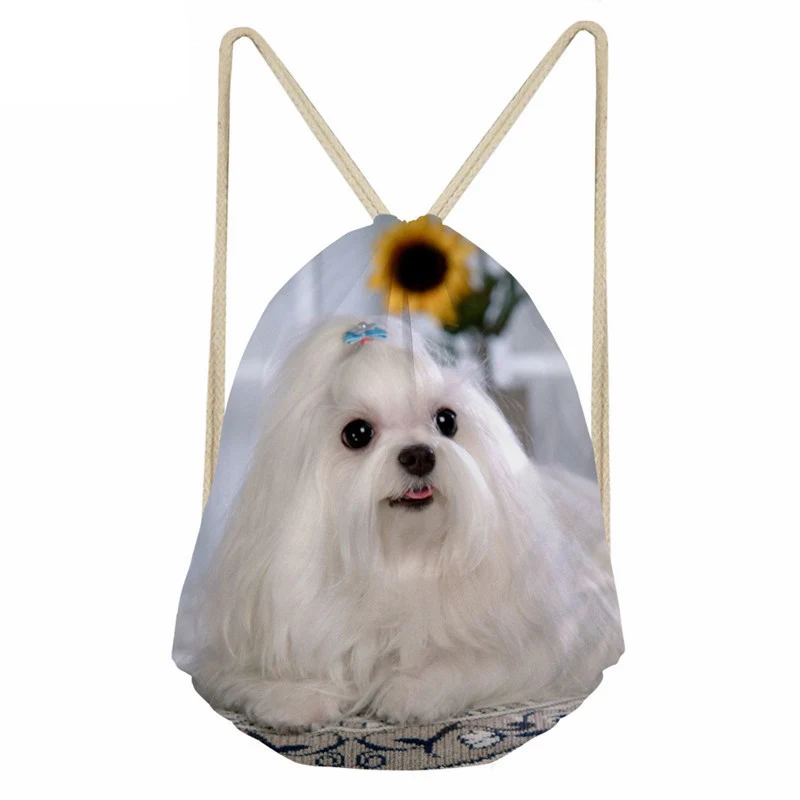 pattern:Maltese Dog print drawstring bag