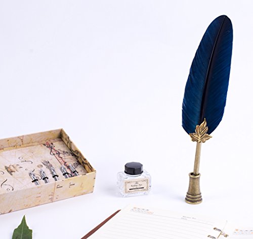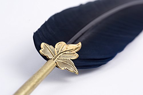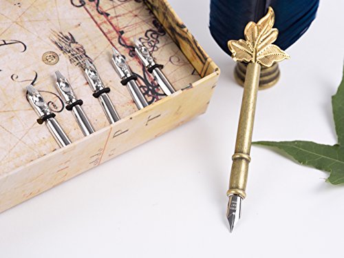 Lingery Calligraphy Feather Quill Pen Set with Pen Stand and 5pcs Stainless Steel Nibs in Different Size