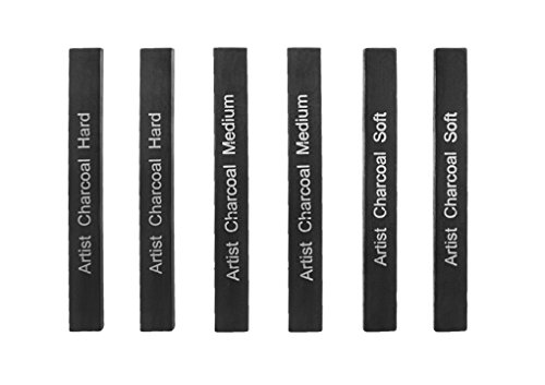 6pcs compressed charcoal sticks for Drawing, Shading, 2 Soft 2 Medium 2 Hard, Drawing Class Essential Tools Kit
