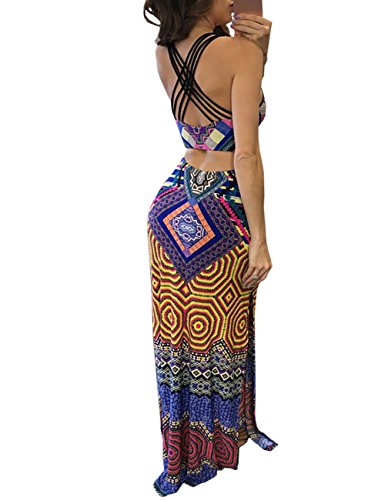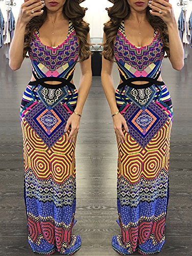 Features:High split side,halter deep v-neck,backless, full Floral Printed,sexy but also elegant.
