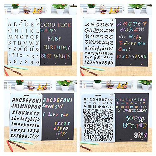 8 DIFFERENT STYLES STENCILS Feature: The letter formation stencils are made of Propene Polymer, Reusable and washable, easy to clean & use.