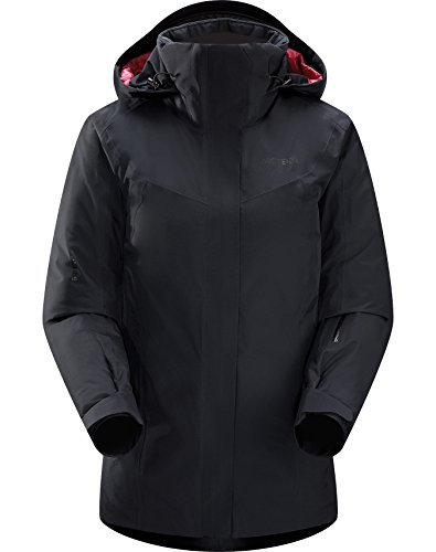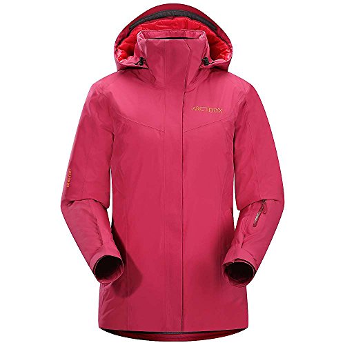 FEATURES of the Arcteryx Women's Andessa Jacket Waterproof Gore-Tex fabric provides protection from wind and moisture Down Composite Mapping places synthetic insulation in areas prone to moisture and down in the areas where warmth is most needed Insulated DropHood with adjustable drawcords fits over your helmet and is designed to rotate with your head WaterTight front zip covered with full length storm flap mesh backed PowderGuard underarm vents Detachable powder skirt with gripper elastic and snap closure e3D Ergonomic 3-Dimensional patterning for enhanced comfort and mobility Conforms closely to the body, trapping heat closer to your core Laminated Velcro? cuff adjusters Easy-sliding sleeve lining won't bind on other layers Adjustable hem drawcord helps to seal out cold drafts Articulated patterning and gusseted underarms for unrestricted mobility Micro-seam allowance (1.6 mm) reduces bulk and weight Taped seams for added weatherproofness Pit zippers for easy venting and temperature regulation Two zippered hand pockets, lower sleeve pocket, internal mesh dump pocket, secure zippered pocket with micro webbing zipper pulls Wind flap with snap closuresFeature