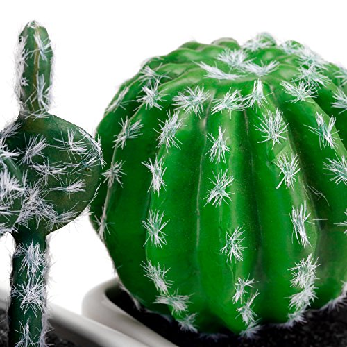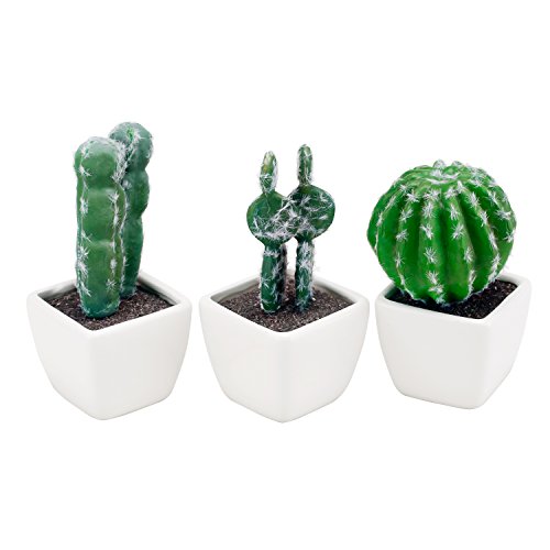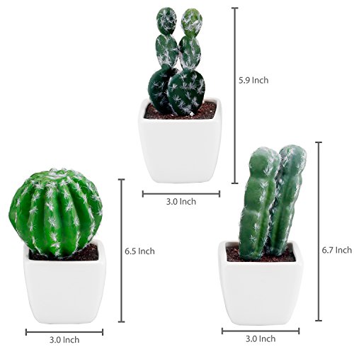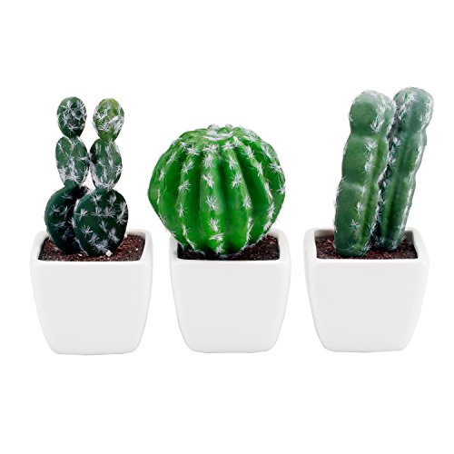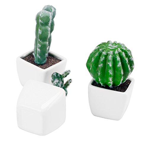 Set of 3 Mixed Artificial Green Cacti with Square White Ceramic Pots
