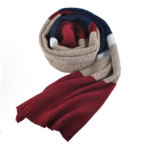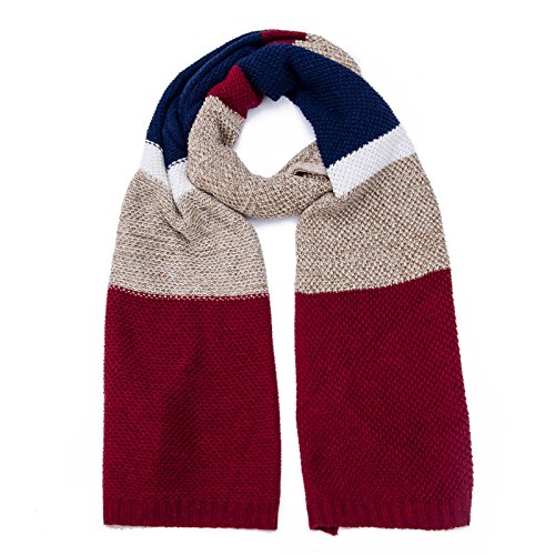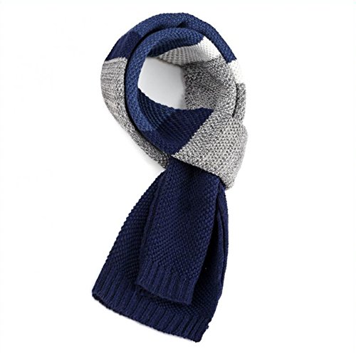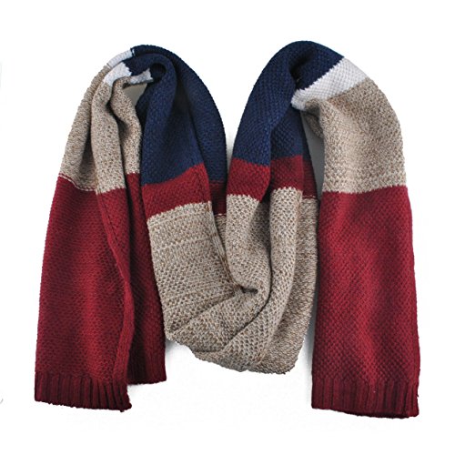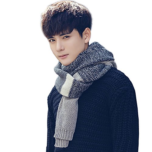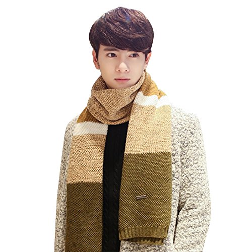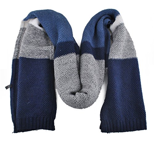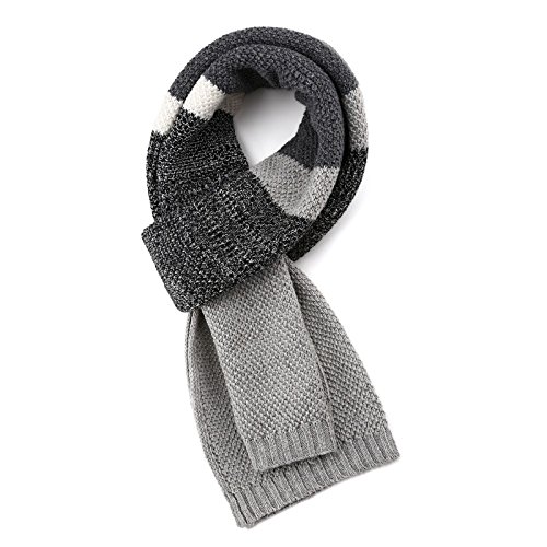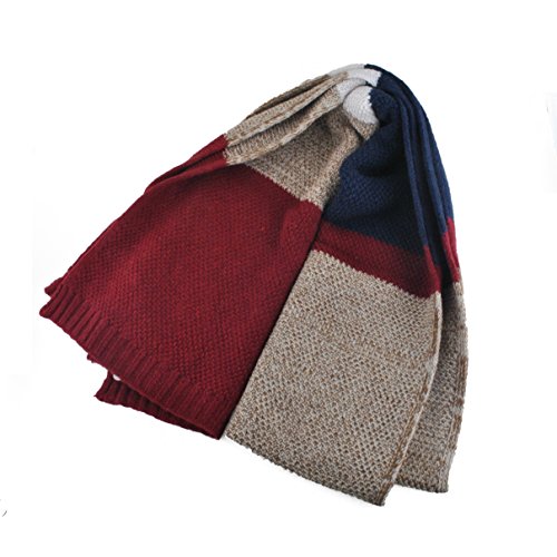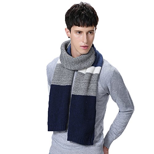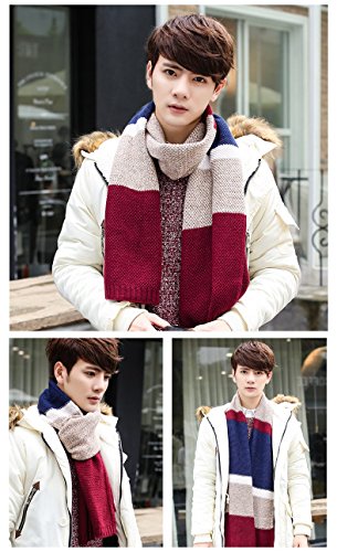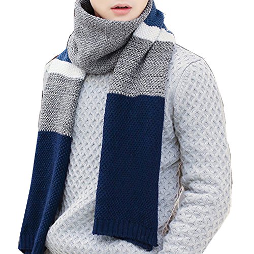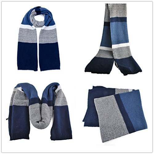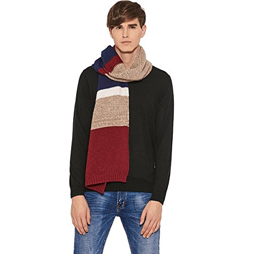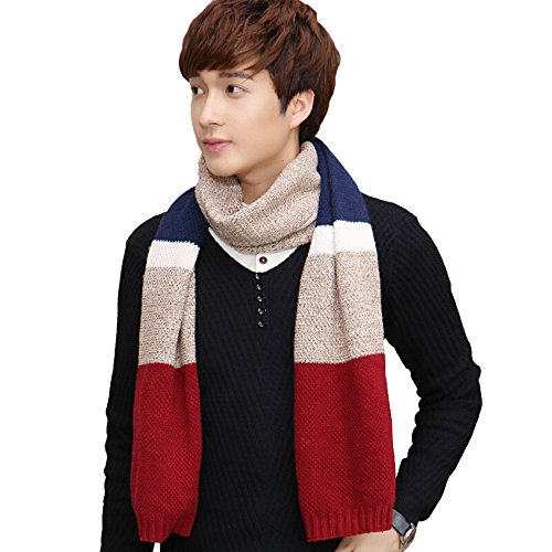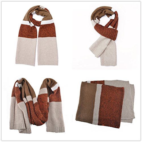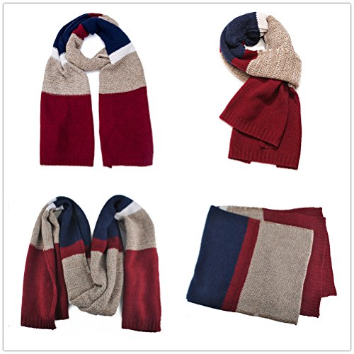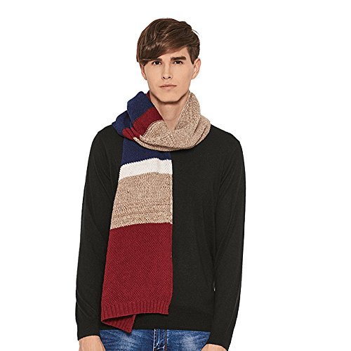 | Winter Cashmere Scarf for Men, Color Block Stripe Wool Knit Fashion Long Scarves |