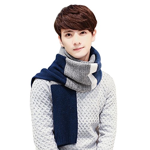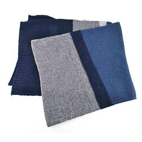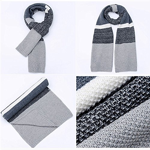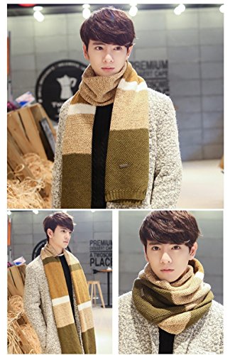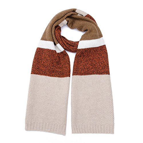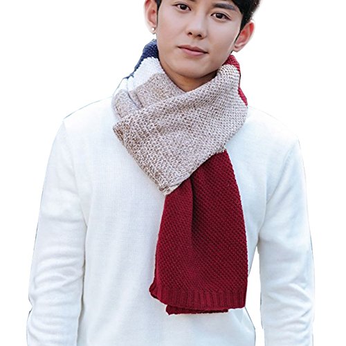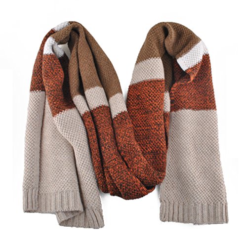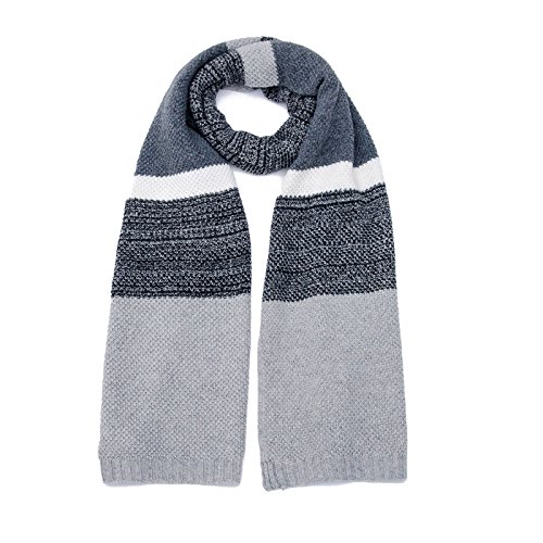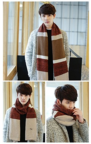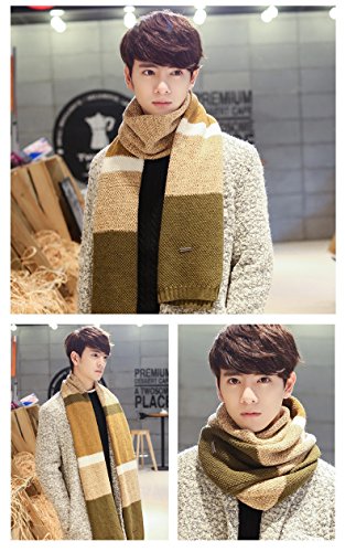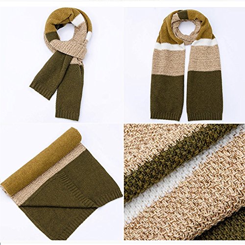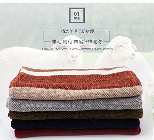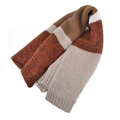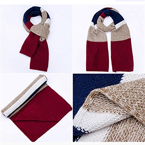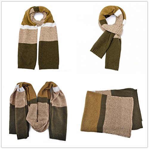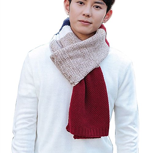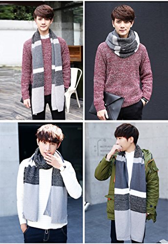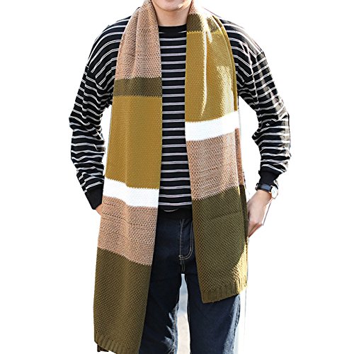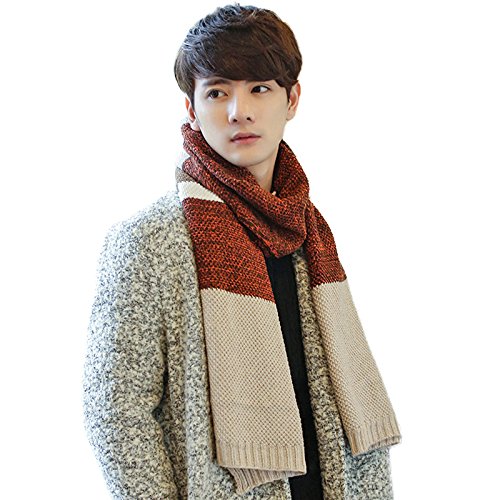 | Winter Cashmere Scarf for Men, Color Block Stripe Wool Knit Fashion Long Scarves |