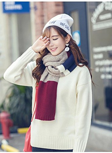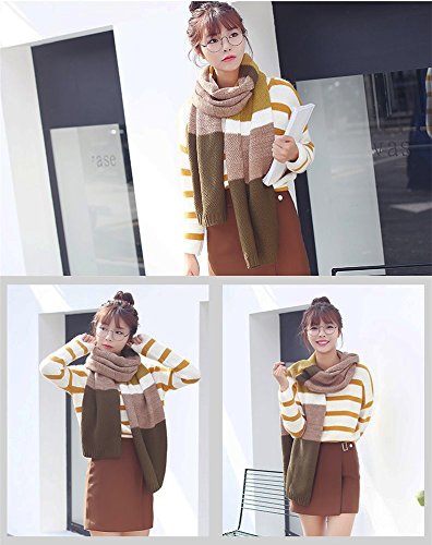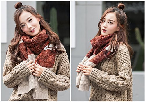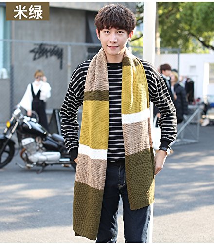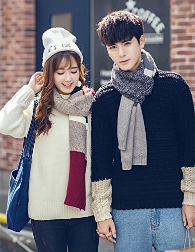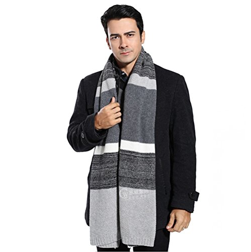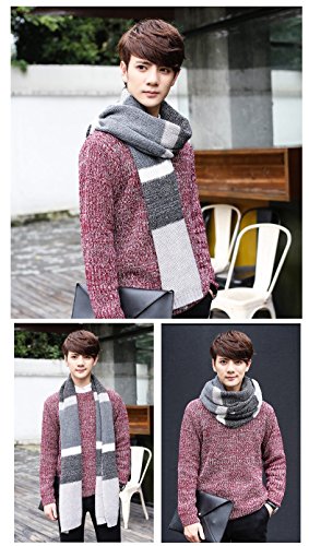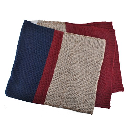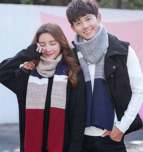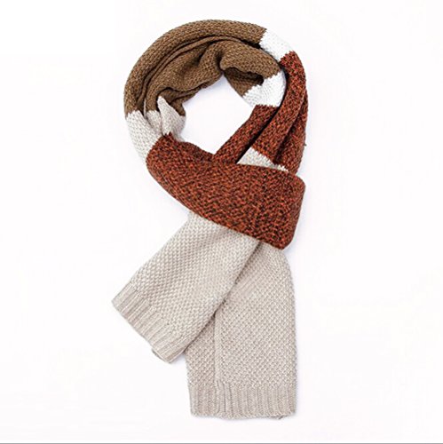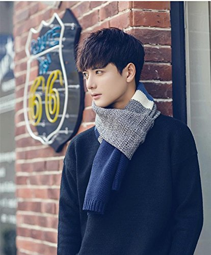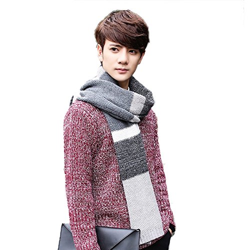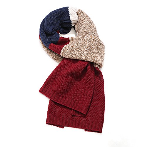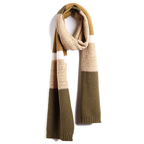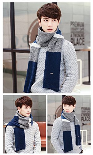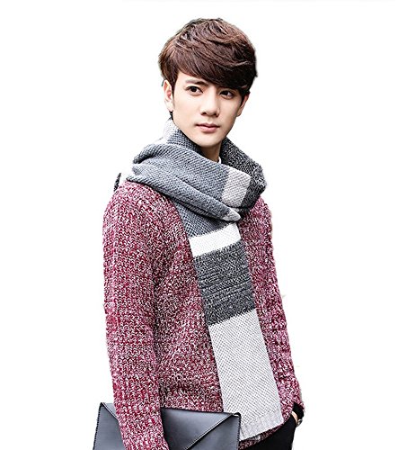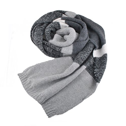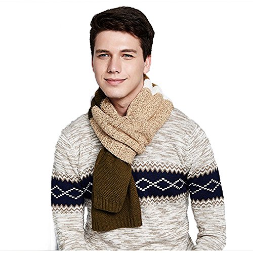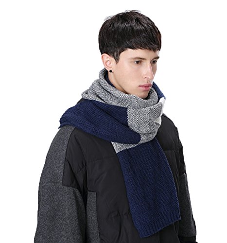 | Winter Cashmere Scarf for Men, Color Block Stripe Wool Knit Fashion Long Scarves |