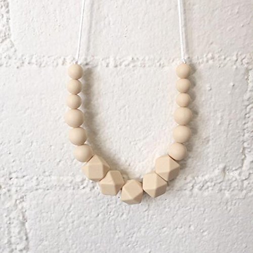 Thoughtfully made with your little cub in mind, our teething necklaces are for moms! Our teething necklaces help with baby's teething pain by soothing gums. Great stimulation for nursing (less distractions). Less hair pulling and fine jewelry breaking for you! Beautiful necklace for Mom, teething toy for baby. Tip: Gently wash with soap and water prior to use. We suggest conditioning the wooden beads with an edible oil/wax (flaxseed or beeswax) as our wooden products are natural. No chemicals here! Returns: Due to the nature of this product, returns will be accepted within 14 days of receiving your item. They must be returned in their original packaging and unused.Feature