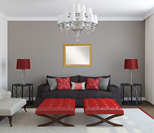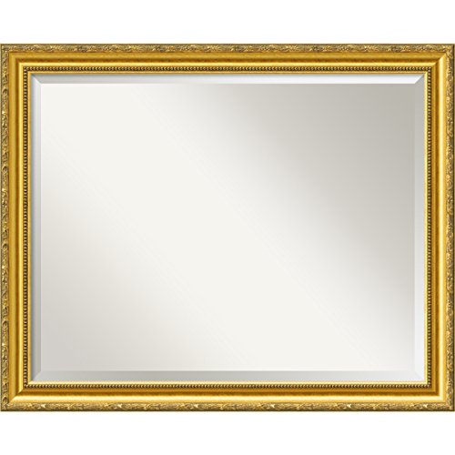 Wall Mirror Large, Colonial Embossed Gold Wood: Outer Size 32 x 26"