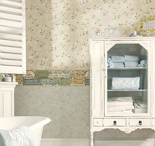 -. Title : Chesapeake BBC46023B Captain Moss Seaside Signs Portrait Wallpaper Border, Blue