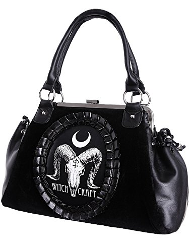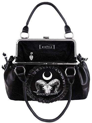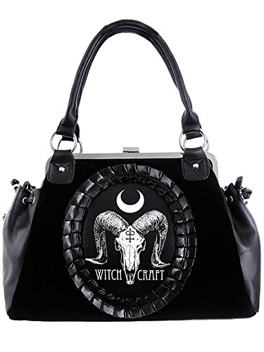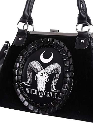 Restyle Gothic Ram Skull Witchcraft Black Velvet Cameo Kiss Lock Handbag