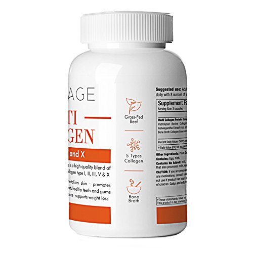 -. Feature : ✅PREMIUM ALL-IN-ONE BONE BROTH + COLLAGEN PEPTIDES: Get all your Collagen needs covered with this all-in-one, super premium collagen and bone broth pharma grade supplement with a potent, high-quality blend of grass-fed beef, chicken, wild caught fish, and eggshell collagens, providing collagen Types I, II, III, V and X. Enjoy these capsules on-the-go! / ✅REJUVENATE: your joints, tendons, ligaments and muscles with this ultra potent multi collagen mix and feel your best!* Collagen is the most important nutrient to maintain a strong and healthy body and may help slow down aging due to its healing and restorative properties!* / ✅SUPPORTS: healthy teeth and gums, promotes restful sleep, helps hormone balance, supports weight loss, reduces cellulite!* / ✅REVITALIZE: your skin, hair and builds stronger nails for a glowing skin and look your best!* / ✅PURE, CLEAN: our Multi Collagen Capsules is Grass-Fed and Third-Party tested and Made in a GMP Certified Facility in the USA and contains no antibiotics, no growth hormones. Add to cart and raise your game!