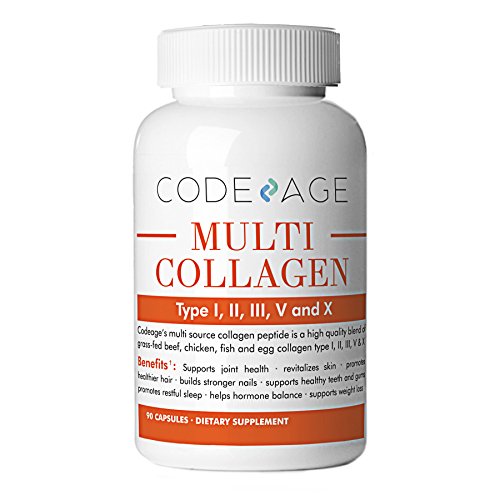 -. Title : Codeage Multi-Collagen Protein Capsules - 90 Count - High-Quality Blend of Grass-Fed Beef, Chicken, Wild Fish and Eggshell Collagen Peptides, Providing Type I, II, III, V and X