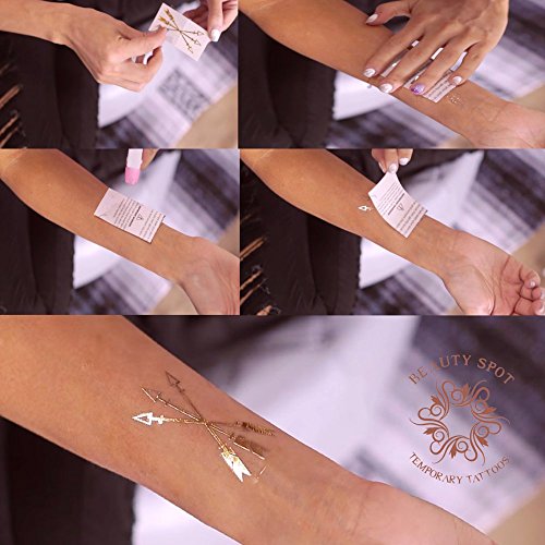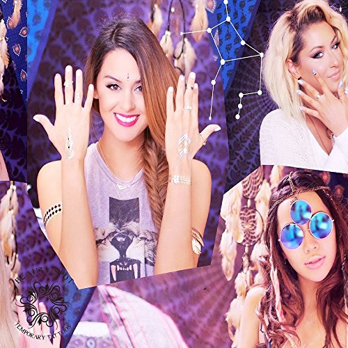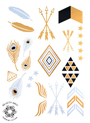 -. Feature : USED BY MICHELLE PHAN in Zodiac Sirens Video. Beauty Spot's Flash Tattoos are CHIC, TRENDY, AND COMPLETELY UNIQUE - made for the people who are bold enough to stand out. Each complete pack includes 4 sheets -MORE than what most other retailers offer! / BEST VALUE - These tats are made with high-quality, HIGH-SHINE foil for the most realistic effect. They're LONG-LASTING, and easy to remove if needed. And to cap things off, they're also WATERPROOF, NON-TOXIC, AND ECO FRIENDLY... making Beauty Spot's Flash Tattoos the perfect accent for any outing, any time, any place. / STRIKING DESIGNS - Inspired by different art forms, from the Central American geometric patterns to swirling henna flowers. Chain link bracelets, gold and silver necklaces, beautiful rings, peacock feathers, arrow clusters... all the most popular tattoo designs, now made of the highest quality flash foil. / SHOW YOUR STYLE AT A DISCOUNT- this pack of tattoos includes 4 complete, high-quality sheets FOR THE P.R.ICE OF 3. Get the same beautiful flash for a much lower P.R.Ice than you would with other retailers - Beauty Spot's Flash Tattoo pack comes with multiple tattoo styles, allowing you to have more variety for a lower P.R.Ice. / There is NO RISK FOR YOU WHATSOEVER WITH OUR 100% MONEY BACK GUARANTEE. If you find that Beauty Spot's Flash Tattoos aren't your style, or if you're not completely satisfied for any other reason, just drop us a line - we'll give you a 100% REFUND. NO LOOPHOLES, NO STRINGS ATTACHED. Beauty Spot is all about making you shine your brightest - so at the end of the day, your satisfaction is all that really matters.