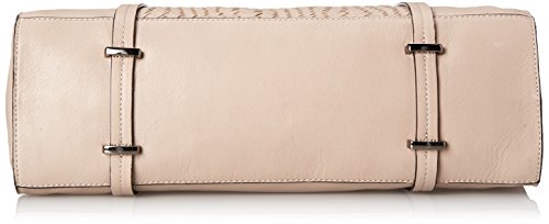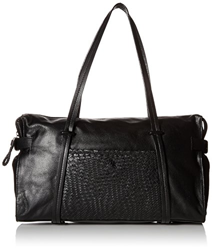 Duffel style tote bag with woven front panel