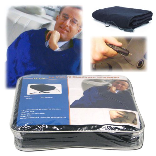 Keeping warm in and out of your vehicle just got a lot easier. The electric car blanket allows you or your passengers extra warmth. Stitched from 100 percent polyester fleece, this large electric blanket is comfortable, functional and safe. Use it to keep your seat warm when the mercury drops; or wrap yourself up while cruising around in your convertible with the top down. You'll be the toast of the tailgate when you unfurl this blanket and its 8 feet long cord means you can extend its range well beyond the back seat. The electric car blanket is gentle on your car's battery and safe for extended use. And the electric car blanket's generous size, 43 inches x 59 inches, is large enough to stretch across two front seats or cover an entire back row of most cars, trucks and SUVs