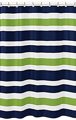 Navy Blue, Lime Green And White Kids Bathroom Fabric Bath Stripes Shower Curtain,72x84inch