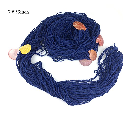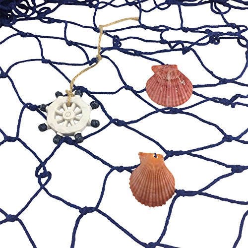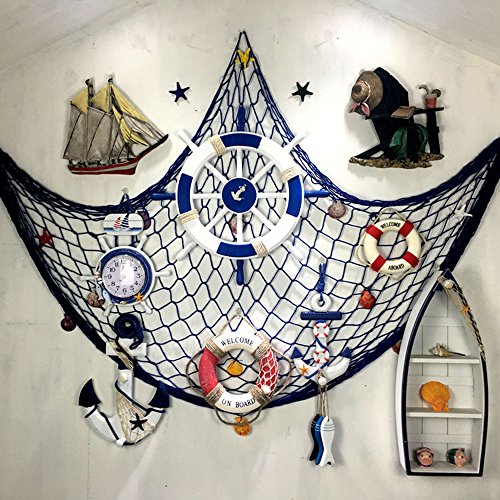 -. Feature : Package contains 1 decorative fishing net with shells, 1 Anchor, 1 Rudder and 1 Life buoy / Material: 3 stranded quality cotton rope, natural shells, wooden hanging ornaments / Fishing net size: 79 inch x 59 inch, actual unfolding size: 63 inch x 51 inch / This fishing net is only for decorative purposes, not for actual fishing. / Suitable for house, themed party, hotel, coffee shop and book shop, to create a nautical theme style.