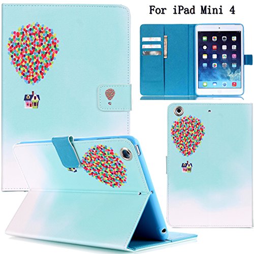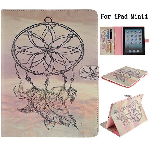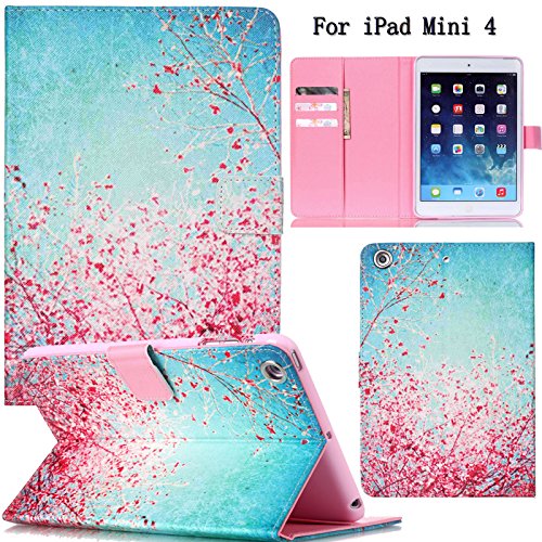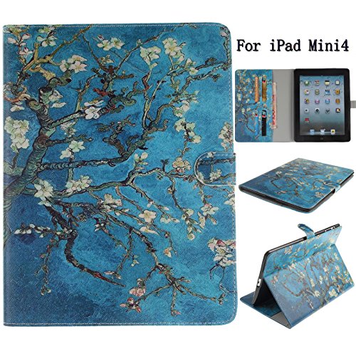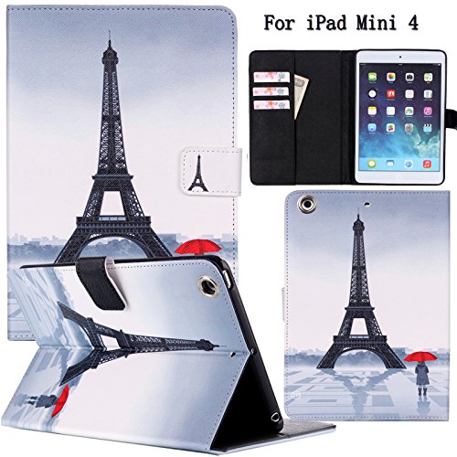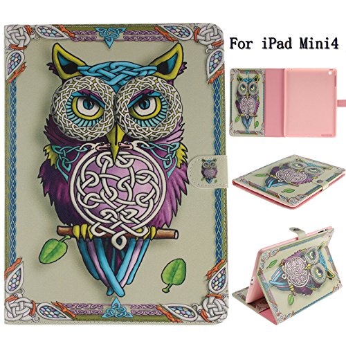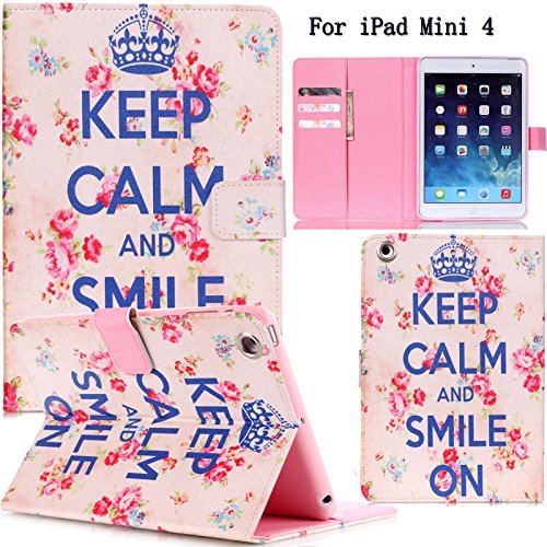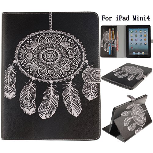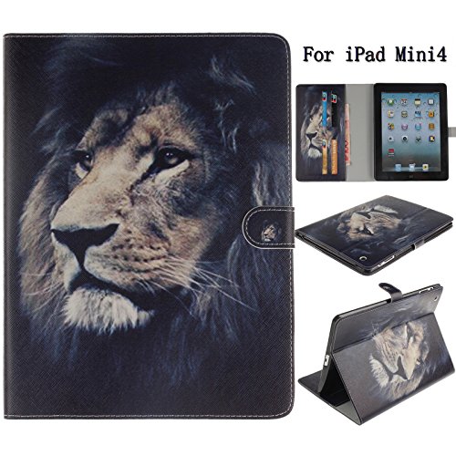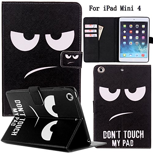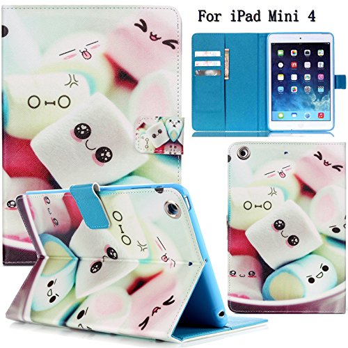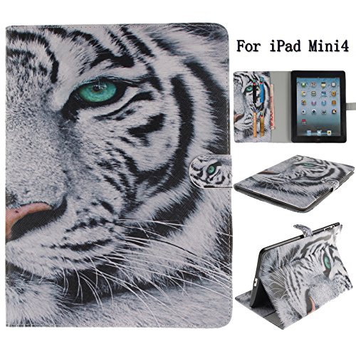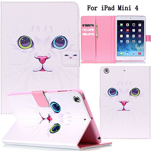 iPad Mini 4 Case, Newshine Fashion Design Premium Leather Wallet Case with STAND Flip Cover with [Auto wake/sleep function] for Apple iPad Mini 4 (2015 edition) 7.9 inch iOS Tablet (White Cat)