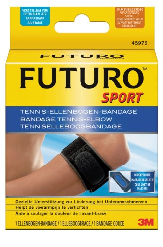 -. Feature : Für Ellenbogenprobleme: Die FUTUROTM SPORT Ellenbogen-Bandage hilft bei Schmerzen bei gereiztem Gelenk, Tennisarm (Epikondylitis radialis) und Golferarm (Epikondylitis ulnaris). / Lindert Schmerzen: Die Bandage bietet optimalen Tragekomfort beim Sport und bei anderen körperlichen Aktivitäten und lindert Schmerzen. / Mit Massageeffekt: Ihre Druckpelotte übt einen gezielten Massageeffekt im Schmerzbereich aus und hilft so, den Heilungsprozess zu beschleunigen. / Individuell anpassbar: Die Bandage ist individuell verstellbar - für einen optimalen Sitz und eine persönlich angenehme Kompression. / Entwickelt in Zusammenarbeit mit Fachärzten und Physiotherapeuten. / Material: Polyurethan-Schaumstoff, Nylon, Polyester, latexhaltig / Größe: Einheitsgröße, Maße: 17,8 - 35,6 cm / Farbe: schwarz
