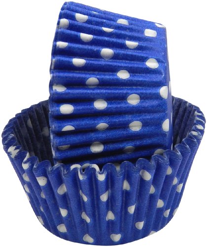 - 40 count cool cobalt blue with white polka dots non-stick, standard cupcake pan liners